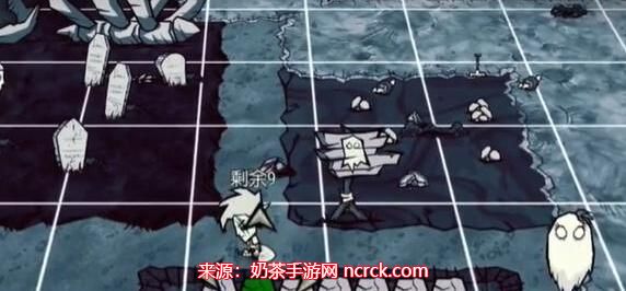 2、把地上的五个石头围墙补好会出现第二个小幽灵。