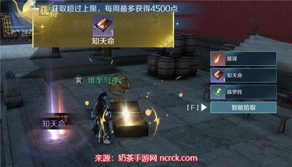 当解谜完成后,一个宝箱会自动弹出在场地上。只需打开宝箱,你就能获得江湖技能"知天命"。
