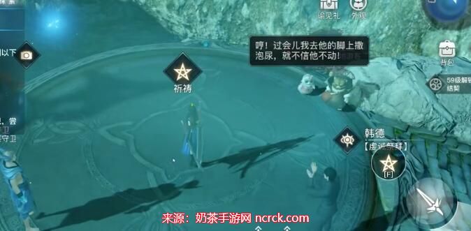 在与韩德对话之后,进行三次祈祷后,找到潮语。与她再次对话,她可能会给你更多关于宝藏的线索。