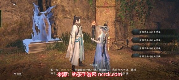 2.检查完七个石碑后,你会发现一个四字口诀:「天地风云」。这个口诀可能会让很多人感到困惑。但请仔细阅读诗句:「阴地阳天」,「阴云阳风」。在这里,阴代表女性,阳代表男性。换算过来的意思是,你需要运行「地字诀」,大师兄则运行「天字决」。之后,推动两个雕像后,还要再进行一轮「阴云阳风」,你运行「云字诀」,大师兄运行「风字诀」。