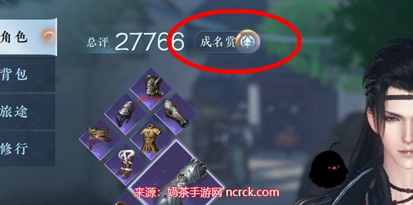 1、首先,在游戏界面的左上角找到相应图标,并点击打开角色界面,在角色界面中,我们可以看到一个名为"成名赏"的选项,点击进入。