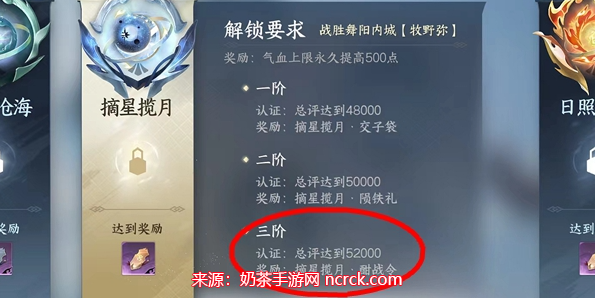 3、对于【摘星揽月·酣战令】,我们需要战胜舞阳城内城的【牧野弥】副本,并且获得总评分达到52000分,即可获得该酣战令作为奖励。