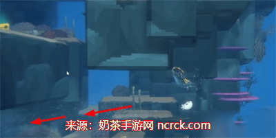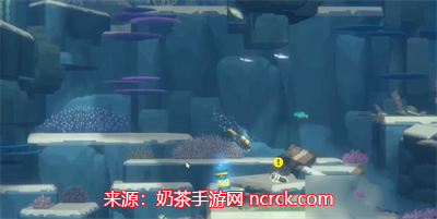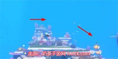 1.首先完成任务调查可疑珊瑚,从章鱼洞穴出来向右下方游动。