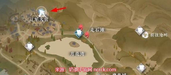 1、打开宋辽边境地图,前往辽军大营地区的坐标【886,457】。