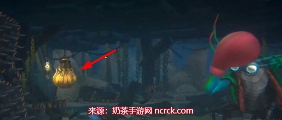 通过将机关向下拉,使一个重物掉落,螳螂虾会优先攻击掉落的重物。利用这个机会,我们可以避免受到螳螂虾的攻击。