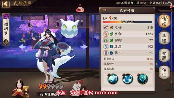 2、多段输出搭配:这是一套适用于多段输出式神的标准御魂配置。烟烟罗的技能“云之鬼”对单体目标能造成5段伤害,再加上一次群体的AOE,共计6段伤害,能够充分发挥针女的特性。同时,烟烟罗的被动技能配合下,即使在没有额外效果命中的情况下,也有很大概率将敌方单位变形。因此,烟烟罗在作为输出时兼具控制的能力,即使未能成功击杀敌方,仍可使其失去战斗力。