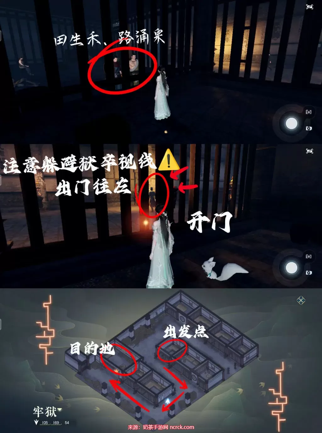 沿着路线去往目的地(中途也要注意“狱卒”的视线,小心被抓回来)