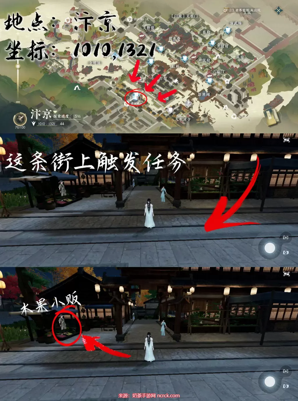 触发后与旁边的“水果小贩”对话