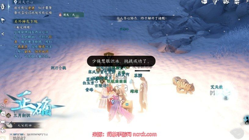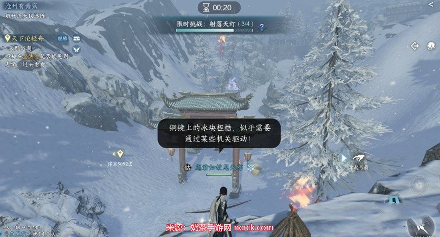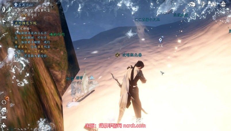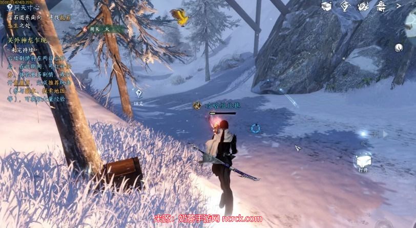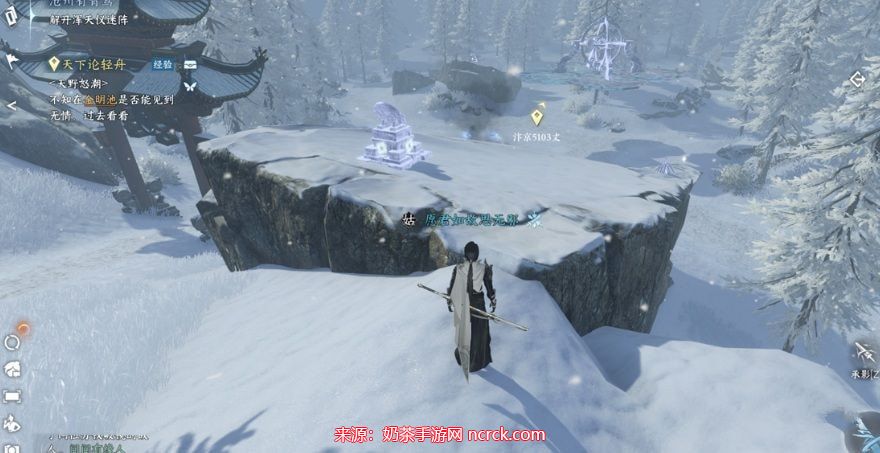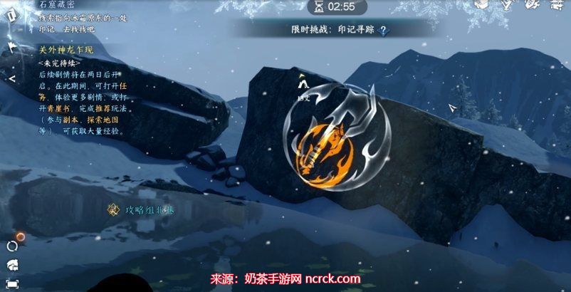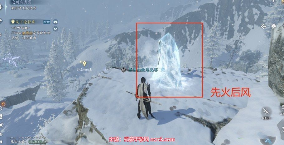 注意:在风雪来袭后,等待一会儿,待风将你吹到后面的石头上后,再返回任务点,靠近石头,即可触发任务。这里可能会有一些小的BUG。