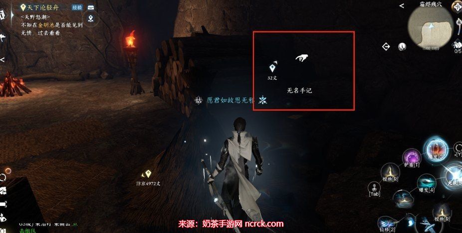 2、前往沧州坐标1088,1105,并踩破冰板。到达指定位置后,你将获得无名笔记。