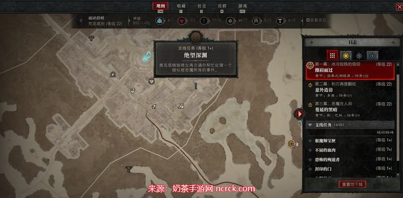 绝望深渊任务的速通指南为你提供了一条快速且有效的路径,以应对各种挑战,希望这些提示能帮助你顺利完成这个任务,享受《暗黑破坏神4》带来的刺激和乐趣,想要了解更多相关攻略的小伙伴可以持续关注奶茶手游网,奶茶手游网每天会为大家推送最新最全的攻略,一定不要错过哦!
