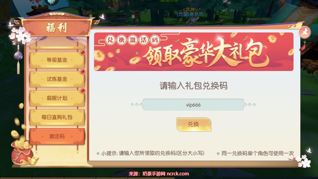二、大佬兑换码: