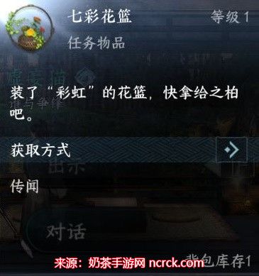 完成上述步骤后,展示编织好的花篮给NPC,任务即可完成。