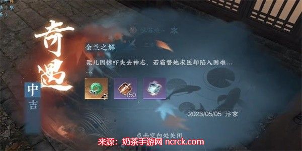 5、随后,若霜晕倒。查看若霜的情况,并结束对话,即可完成金兰之解奇遇任务,并获得相应奖励。