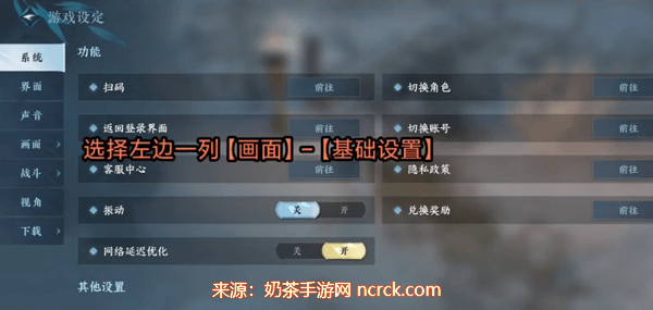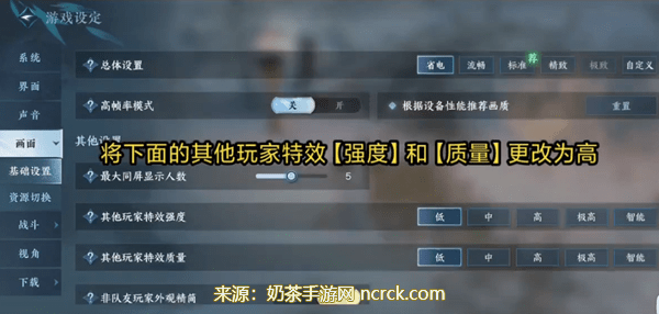 然后选择左边的画面选项,并点击基础设置。在这里,将特效强度和质量设置为高。