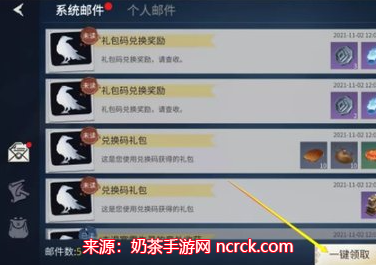 5、在邮箱中,你将看到已经获得的兑换奖励,点击领取全部奖励即可。