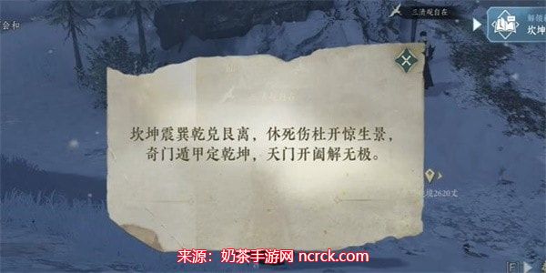 传闻内容:坎坤震巽乾兑艮离,休死伤杜开惊生景奇门遁甲定乾坤,天门开阁解无极。