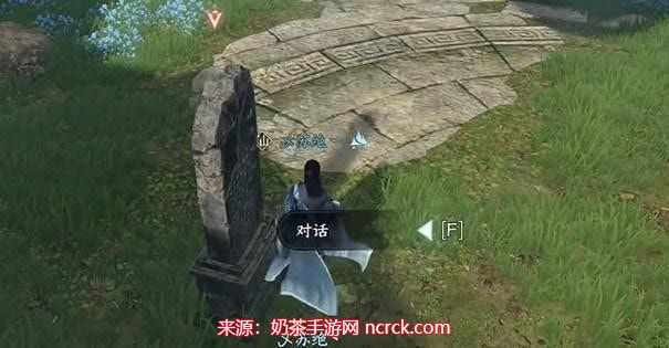 一旦你跳下山崖,你会来到一个特殊的区域,在那里有一块石碑。与石碑对话,并按照提示进行操作。