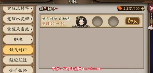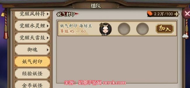 在组队界面中,切换到妖气封印模式。