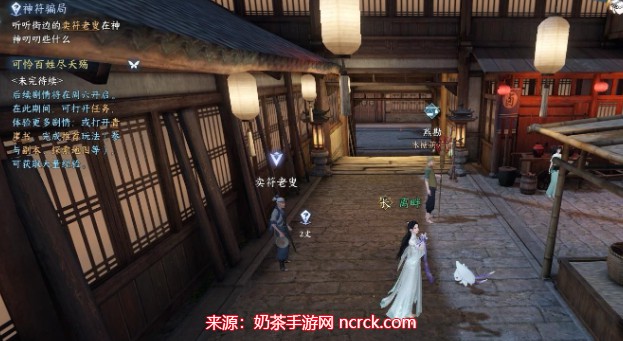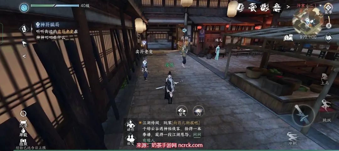 2、前往任务地点的坐标位置为973,1102。在那里你会找到卖符老叟,与他对话并尽量获取任务相关的信息。