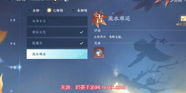 完成了逆水寒手游中的奇遇「流水难追」,您将收获不仅仅是内功心法的奖励,更是对游戏世界的一次探索与征服,通过与侠客的对话、河边的等待和最后的对话,您展现出了聪明才智和勇往直前的精神,希望本攻略能为您提供了一定的帮助,并祝愿您在游戏的世界中继续冒险,创造更多精彩的故事和奇遇。