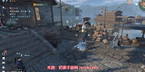 在侠客的指引下,沿着指引走向河边。根据地图,找到下图中的位置(具体位置可能会有所变动)。