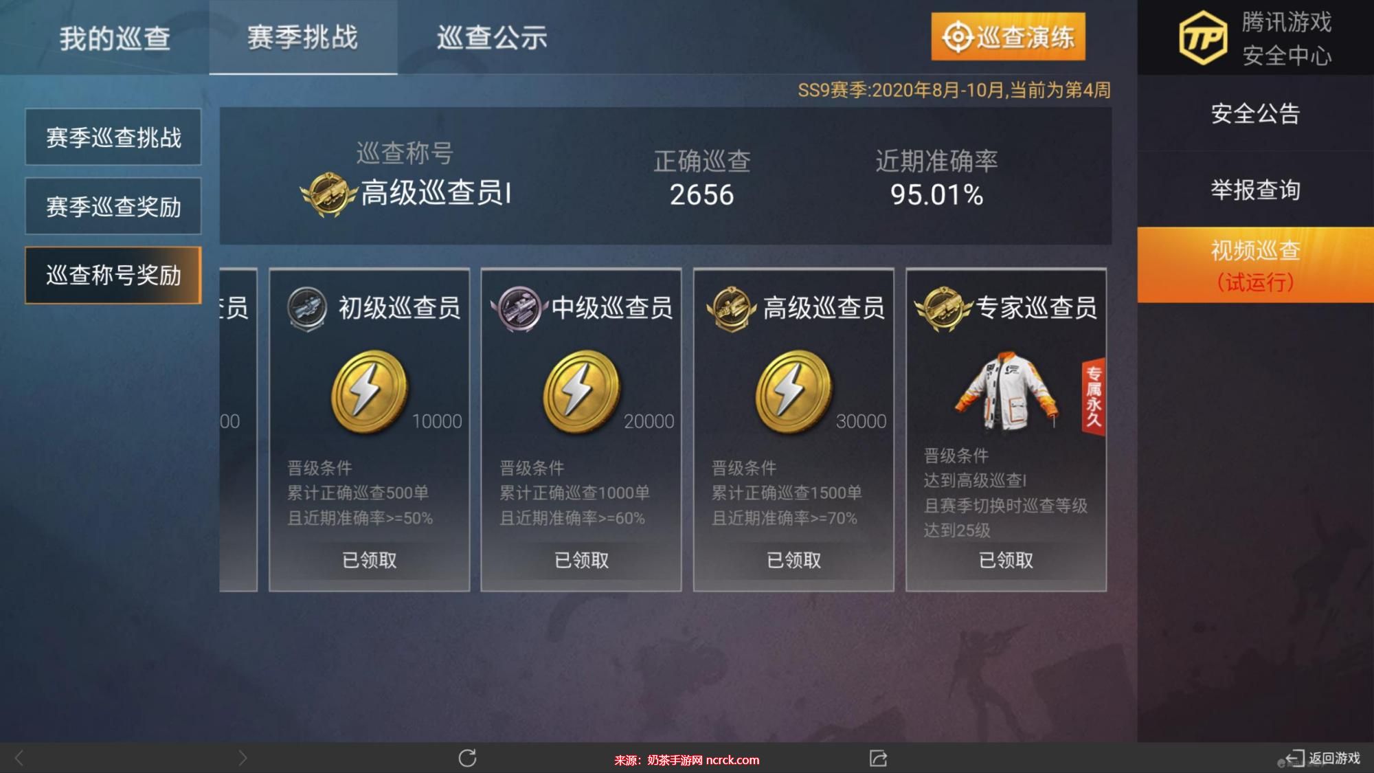 另外,有一种说法是,《刺激战场》时期的老账号比《和平精英》的新账号更容易成为巡查员。刺激哥虽然不认同这种说法,但你可以参考一下。