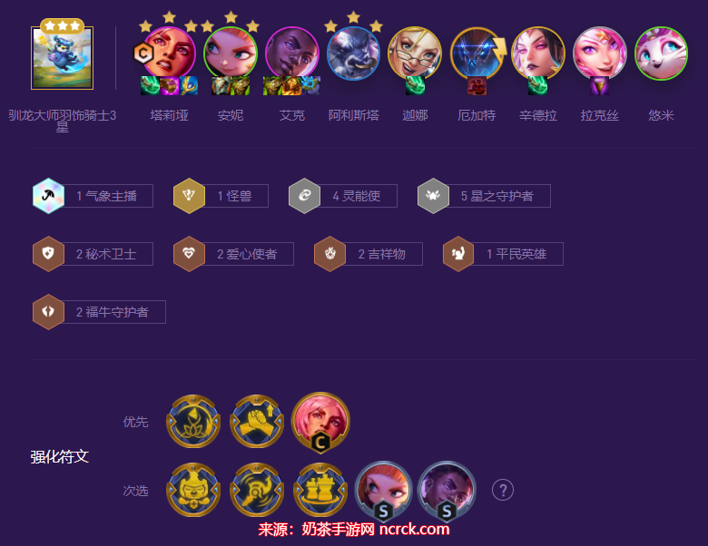【阵容搭配】 云顶之弈星之守护者阵容以主C岩雀为核心。