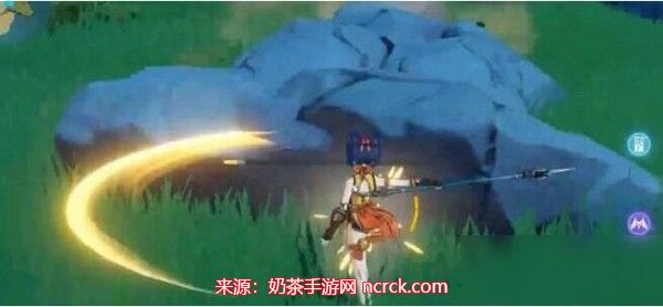请注意,你需要站在高塔处才能看到这块石头。一旦你发现了石头,你可以操纵你的角色进行攻击,破坏石头,然后找到隐藏在里面的仙灵。