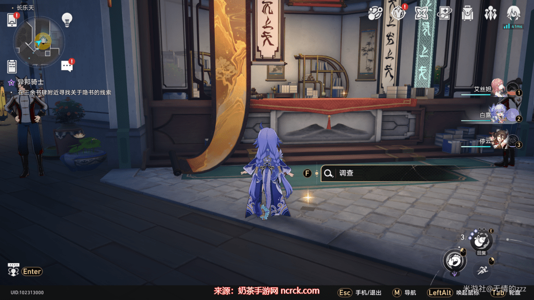 4.随后,我们在过完一段剧情对话以后,找到NPC净砚,进行线索排查