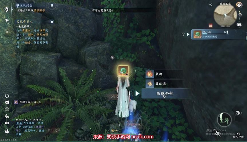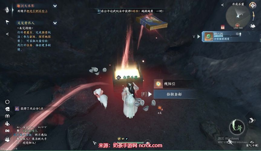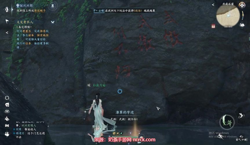 查看石壁上的字(1263,1486),观看动画,会有四个可探索的点,依次探索,路上还会有一些箱子,不要错过,箱子的坐标在下面