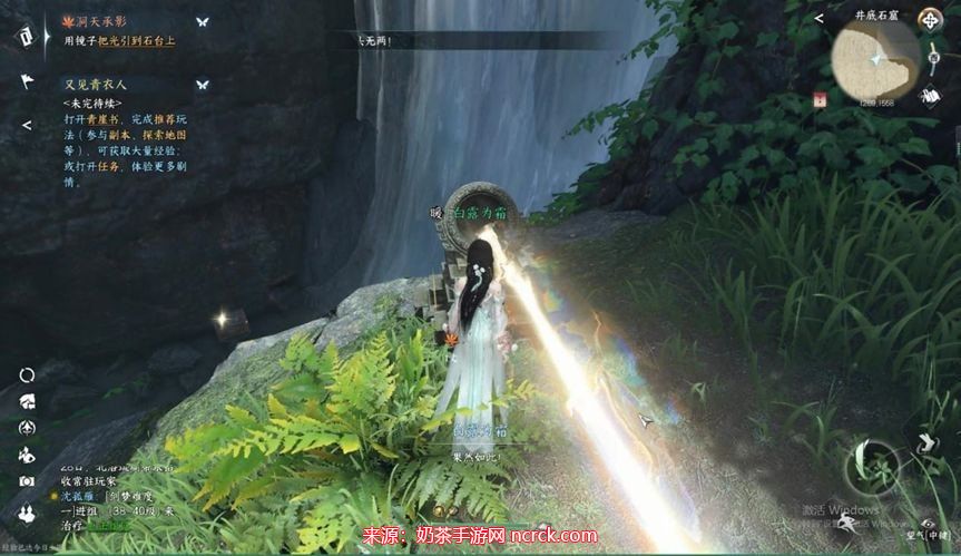 爬上悬崖(1269,1558),按F交互,用镜子把光引到石台上