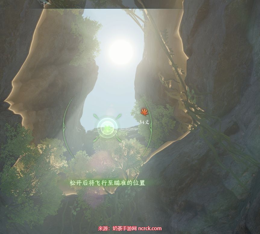 右下角拖动承影剑,转动视角瞄准顶部岩壁离开山洞