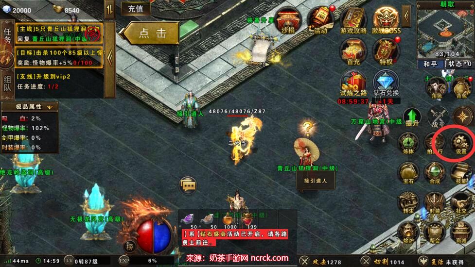 1、在沙城之战游戏主界面的右侧点击菜单,找到设置按钮。