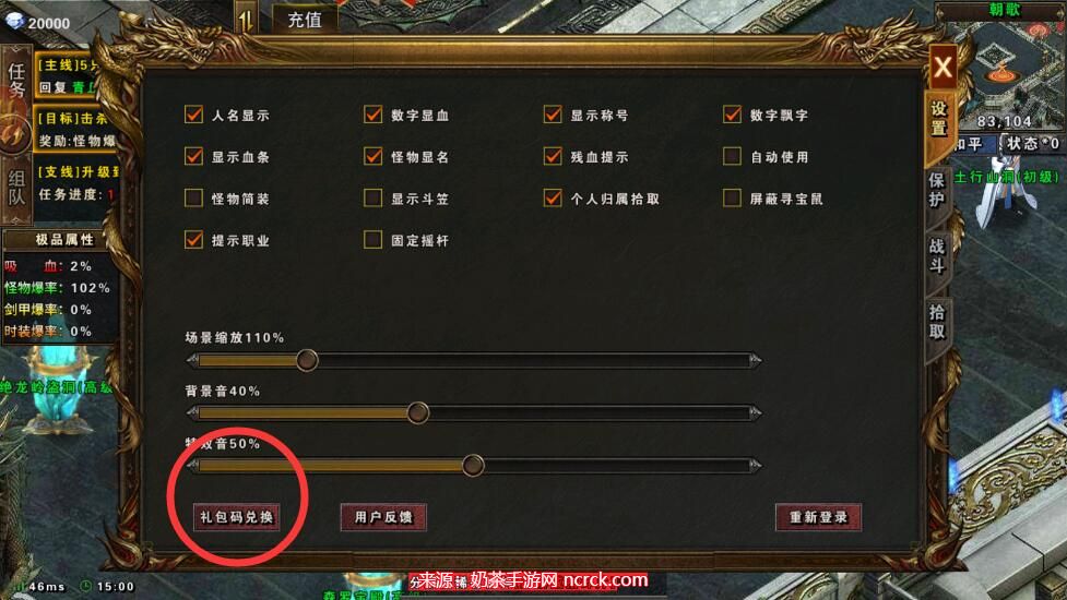 2、在游戏的设置页面的左下角,您将看到一个名为"礼包兑换"的按钮。