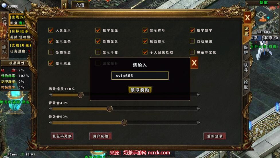 3、点击"礼包兑换"按钮后,会弹出一个输入框,输入上方提供的激活码,确保输入无误。