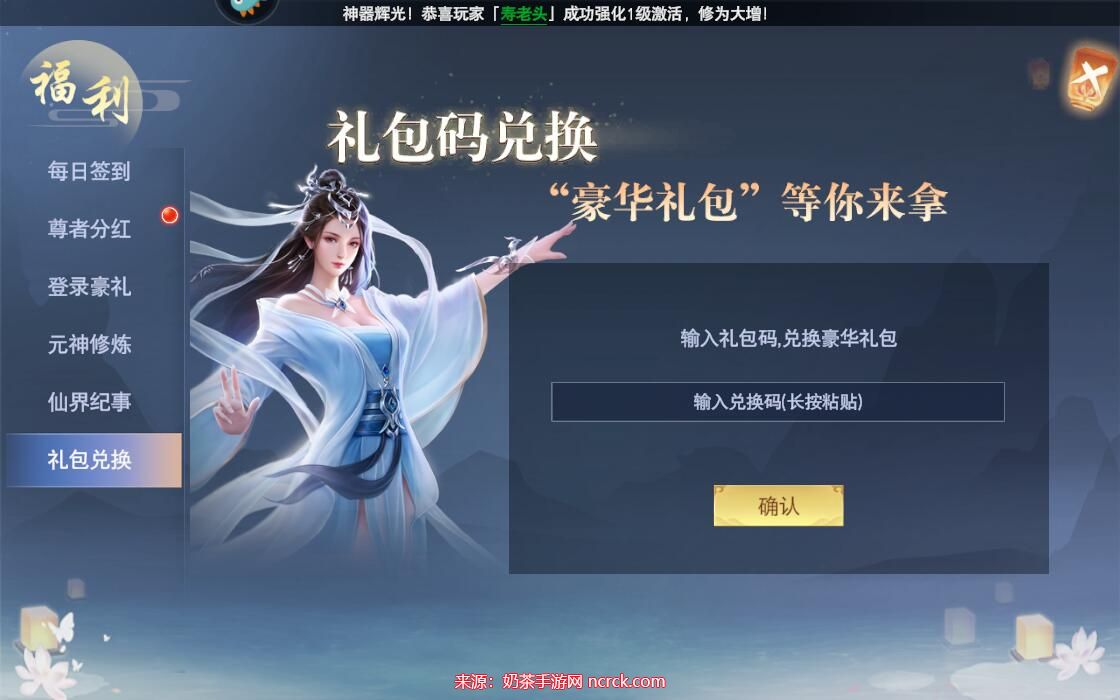 4、输入兑换码后,点击确认按钮,即可领取相应的奖励。根据您输入的兑换码不同,您将获得不同等级的奖励。