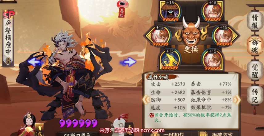 点评:如果没有狂骨御魂,轮入道也是一个不错的选择。它能够使酒吞童子的普攻变为多段攻击,并且还具备回血效果。