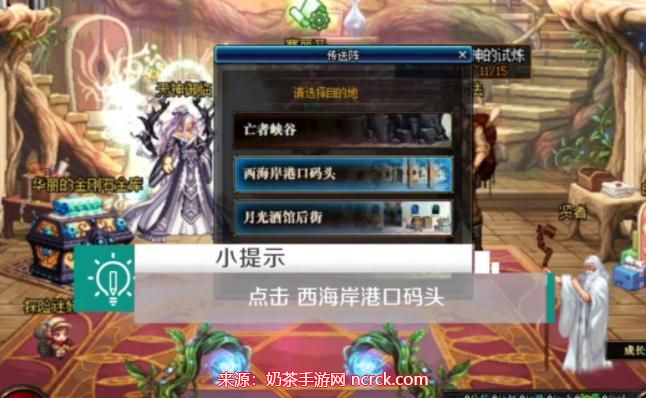 2、走到传送门旁边,点击进入"西海岸港口码头"。