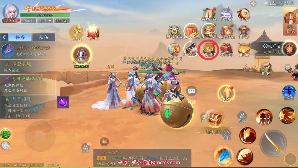 1、首先,完成白蛇疾闻录的新手任务,然后在主界面找到开服盛典图标。