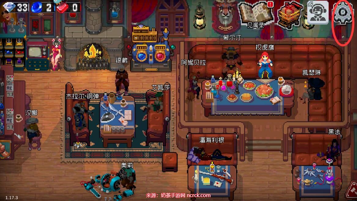 1、首先完成新手任务,进入战魂铭人的主界面,点击界面上的设置图标。