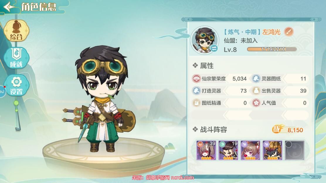 2、进入角色信息界面后,点击左侧的设置图标。