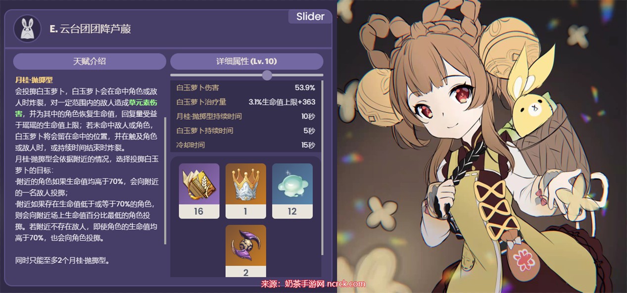 黑缨枪适合瑶瑶这个奶妈角色,因为它能提供额外的生命值加成。在选择圣遗物时,可以考虑加生命值的选项。奶妈的套装选择比较广泛,可以考虑使用四千岩、四少女、四海染、二加二等套装。这样的搭配主要注重治疗效果。需要注意的是,瑶瑶的治疗效果需要进一步观测,如果需要依赖元素爆发来提升治疗效果,可以考虑调整圣遗物的选择,选择绝缘2+2(生命、治疗、精通)的搭配。而在武器方面,可以选择试作星镰、西风长枪或黑缨枪。