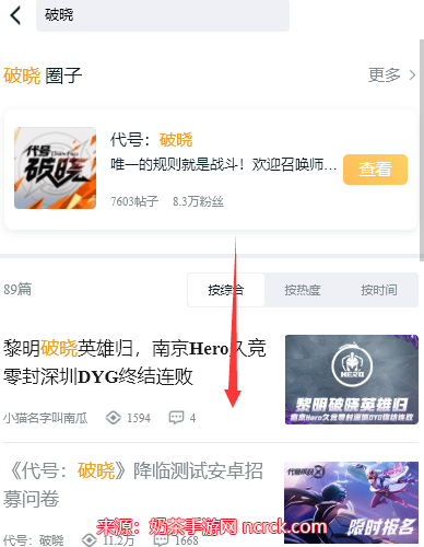 2、进入【王者营地】后,在顶部的搜索框中输入【代号破晓】,然后点击搜索结果中相应的选项。