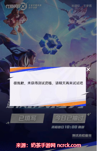 5、每天上午10点,记得点击右侧的【获取资格】按钮,幸运的玩家将有机会获得测试资格。