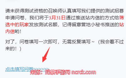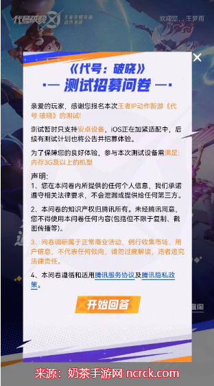 3、详细阅读测试资格调查问卷的说明,目前该测试仅限安卓手机用户,IOS版本仍在开发中。