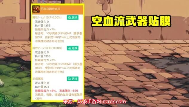 第三词条:第10条 - 攻击强化526、4%技能攻击力,HP恢复效果-25%。