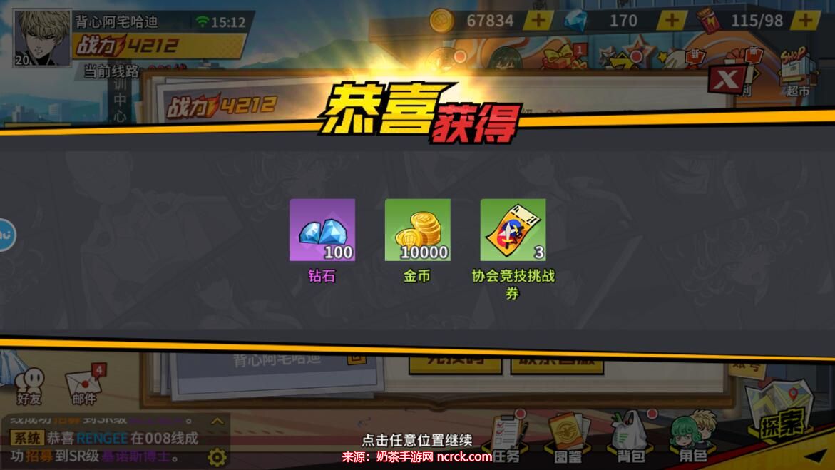 4、点击确定,即可获得钻石、金币以及竞技挑战券等丰厚奖励。