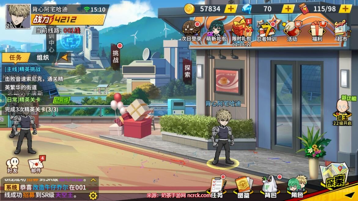 1、首先,进入一拳超人最强之男手游并完成新手任务,在游戏中点击头像,进入玩家信息界面。