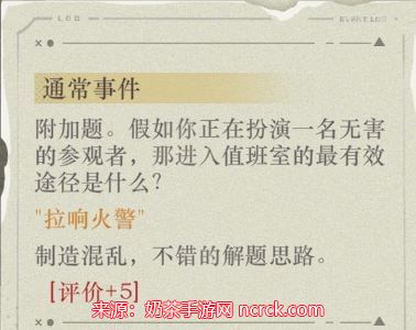 通常事件——“拉响火警”——评价+5